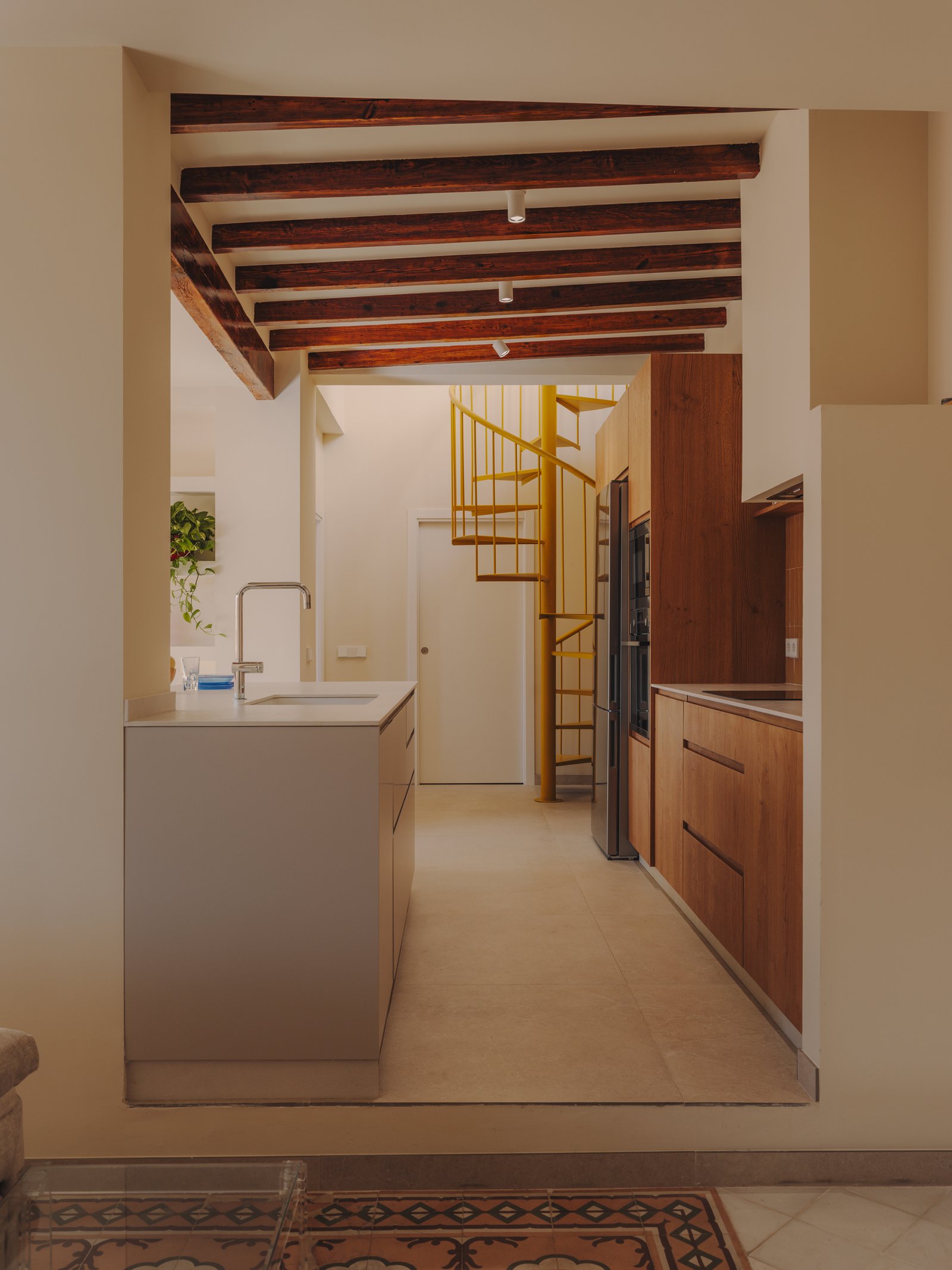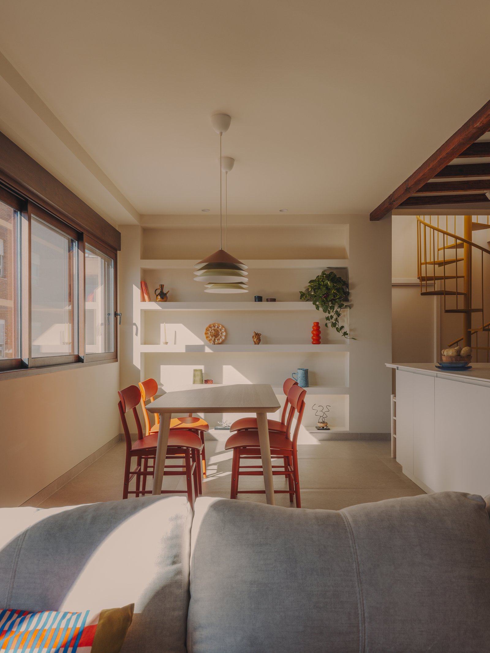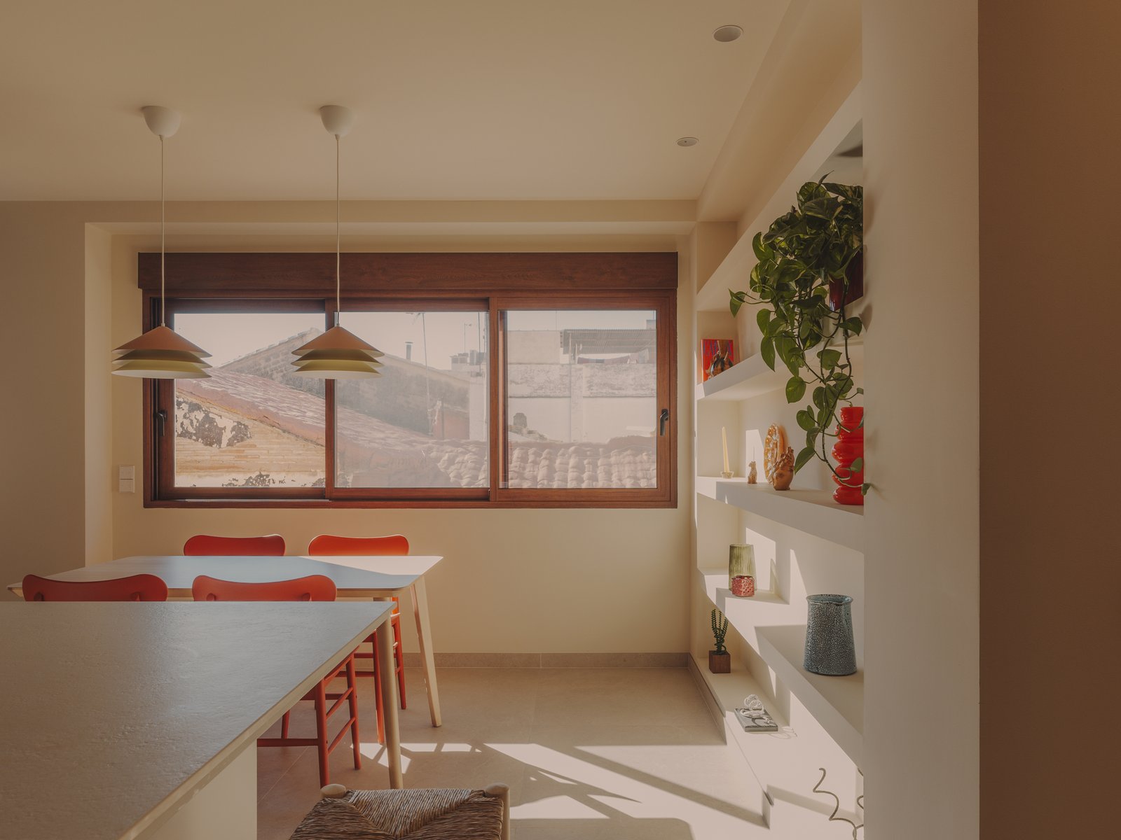 Located in l’Horta Sud, Valencia, Casa Escaleta is directly accessible from the street via a narrow staircase, a distinctive feature of many single-family homes in the area. Hidden behind its facade lies a dwelling with over a hundred years of history, typical of a village house typology. The intervention aimed to reinterpret its existing layout, transforming a compartmentalized structure into a spacious and fluid space designed for a young couple seeking a contemporary home while preserving the original character of the house.